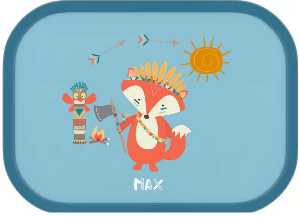 Personalisierte Kinder-Brotdose mit Bento Einsatz - Motiv Fuchs Boho