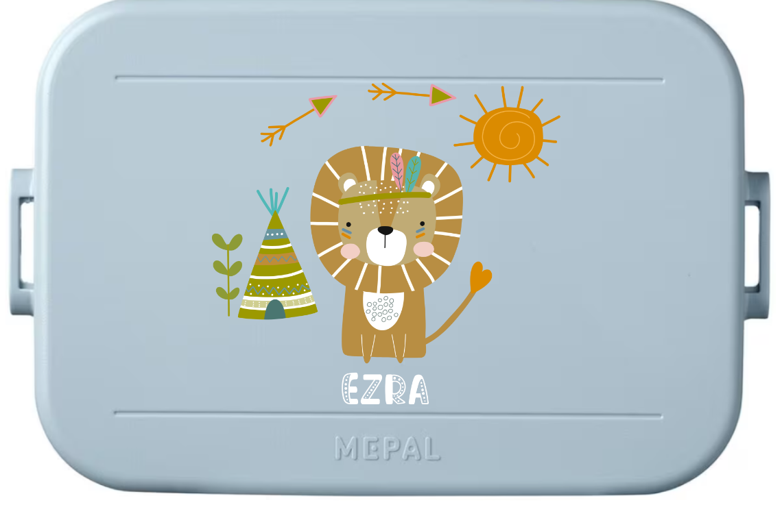 Entdecke unsere personalisierte Kinder-Brotdose mit Löwen-Tipi-Motiv – Praktisch und individuell gestaltet