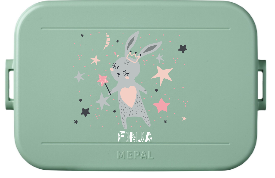 Lass die Augen deiner kleinen Prinzessin strahlen! Mit unseren personalisierten Brotdosen für Mädchen mit Zauberhasen-Motiv wird jede Mahlzeit zu einem zauberhaften Erlebnis. Bestelle jetzt und bereite deinem Kind eine ganz besondere Freude mit einem individuellen Alltagsbegleiter, der sie überall hin begleitet!