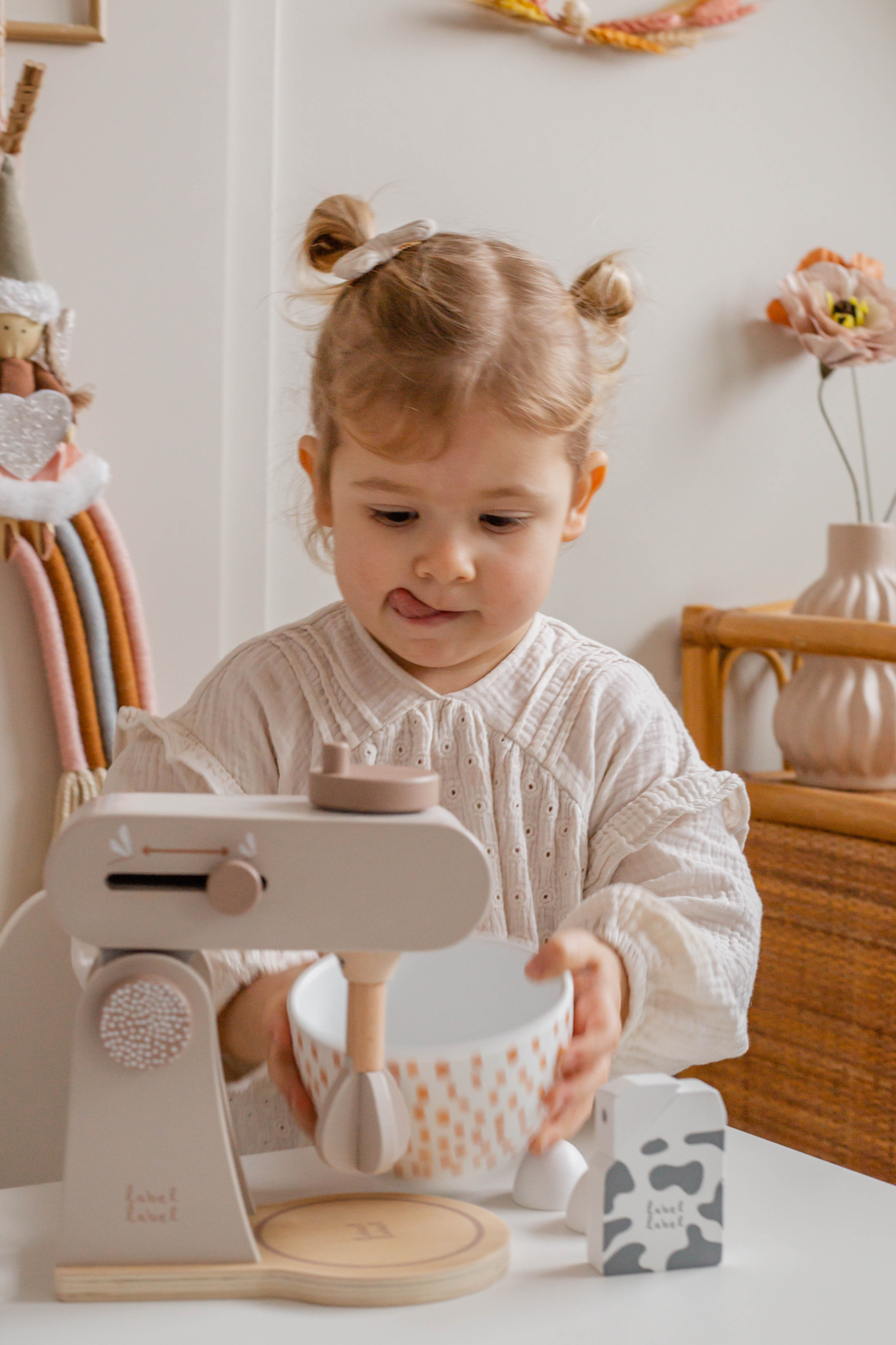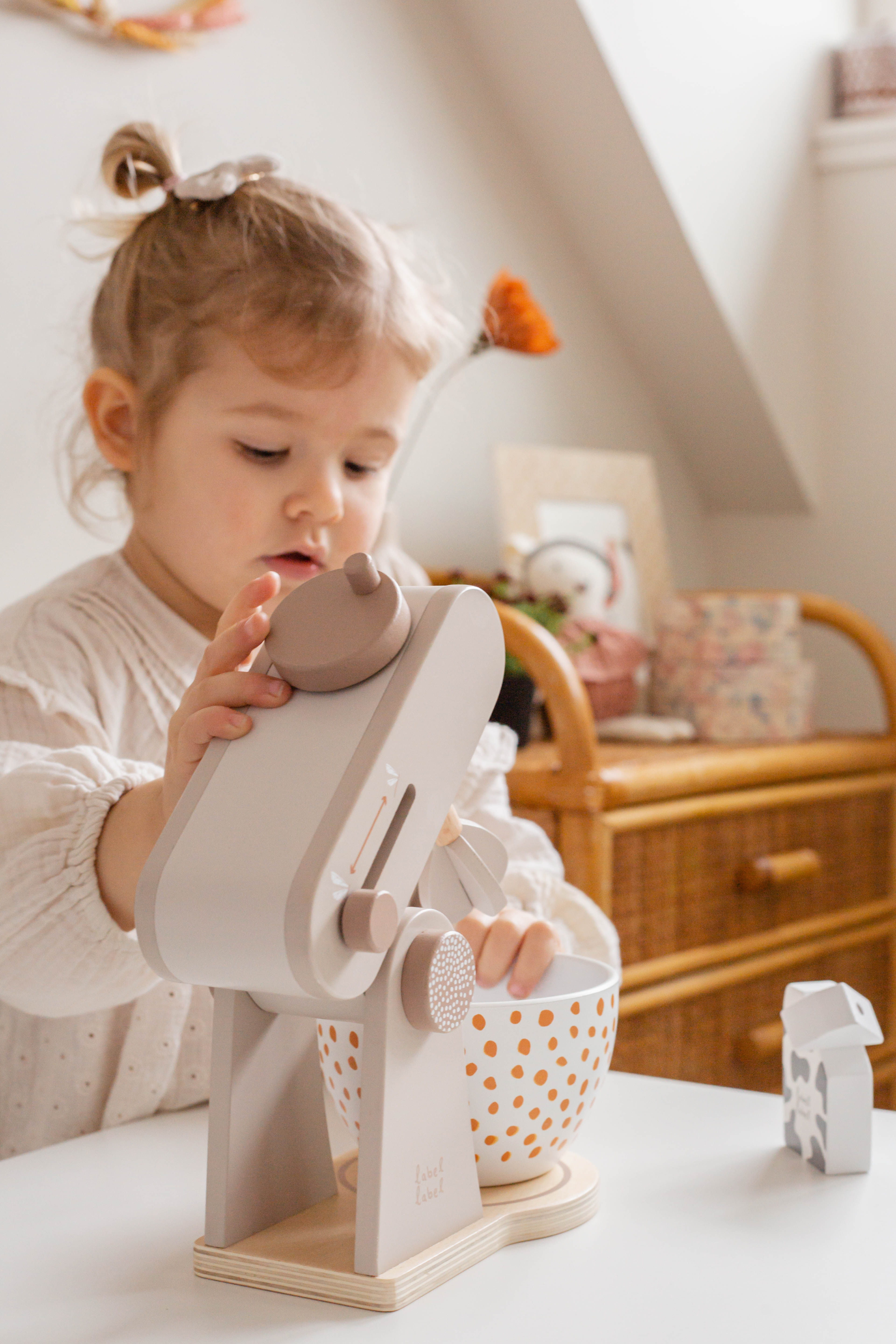 Label-Label Mixer Küchenmaschine aus Holz in Nougat – Kreatives Spielvergnügen für kleine Bäcker